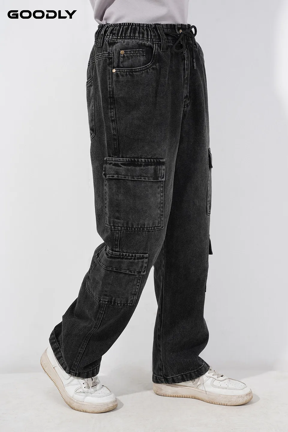 Step up your casualwear with these Men’s Relaxed Fit Denim Baggy Extra Cargo Pockets. Crafted from soft, durable denim, these Baggy blend laid-back comfort with functional streetwear style. Designed with multiple utility pockets — including double cargo flaps on the leg — they offer plenty of storage without compromising on aesthetics. The elastic waistband with a drawstring ensures a secure, adjustable fit, while the relaxed silhouette keeps it easygoing and modern