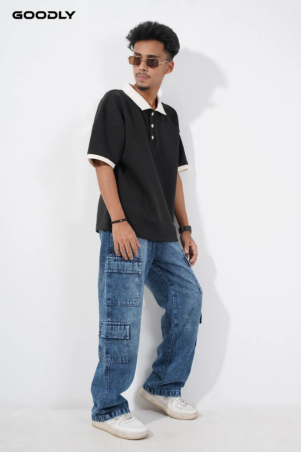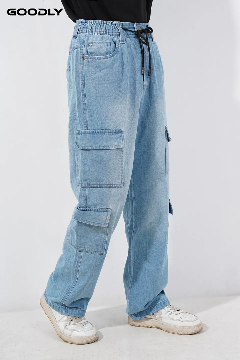 Men’s Relaxed Fit Denim Baggy 8 Pockets Cargo